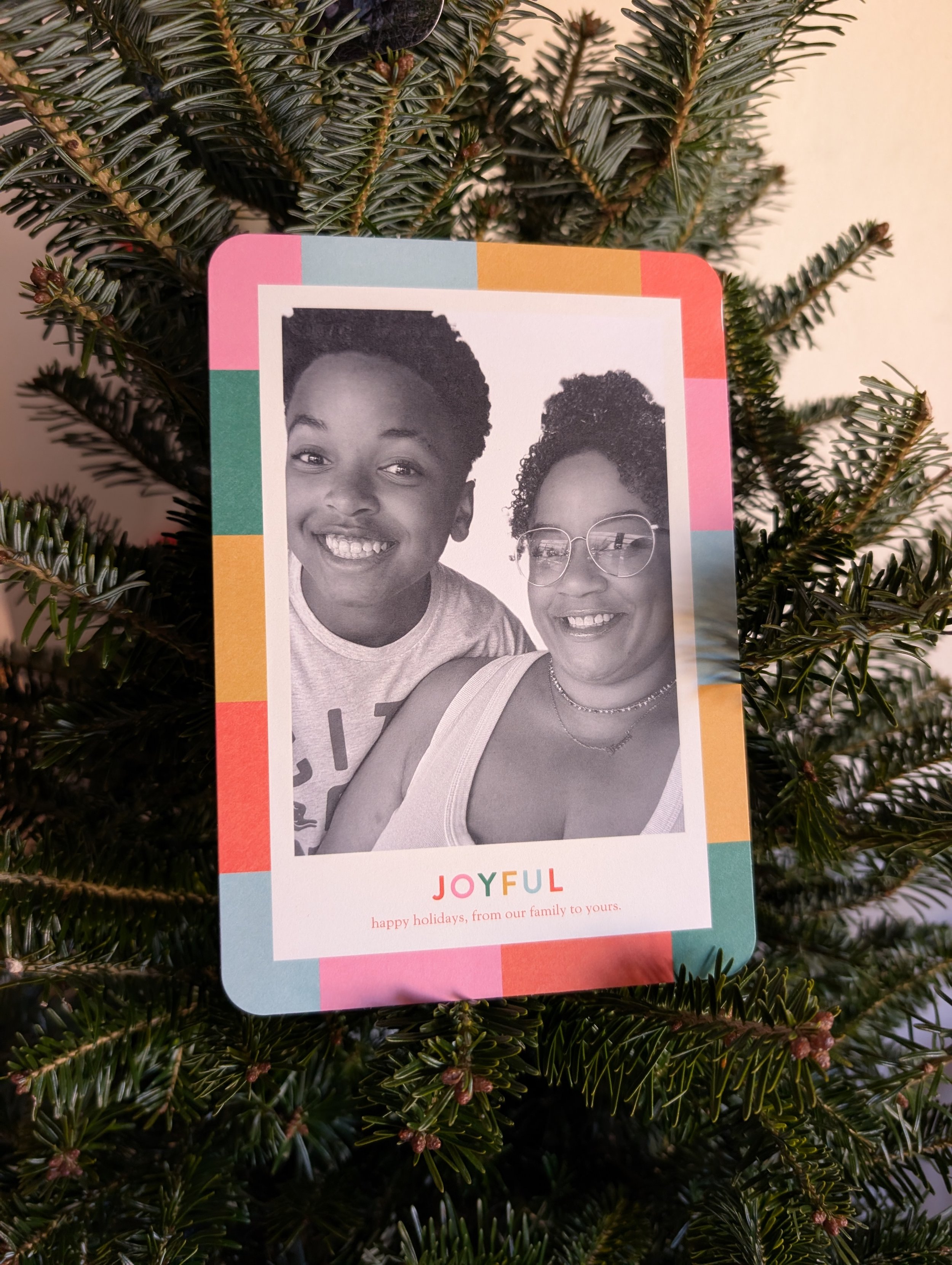 My friend PJ sent this photo of our holiday card on her Christmas tree and it made my day!