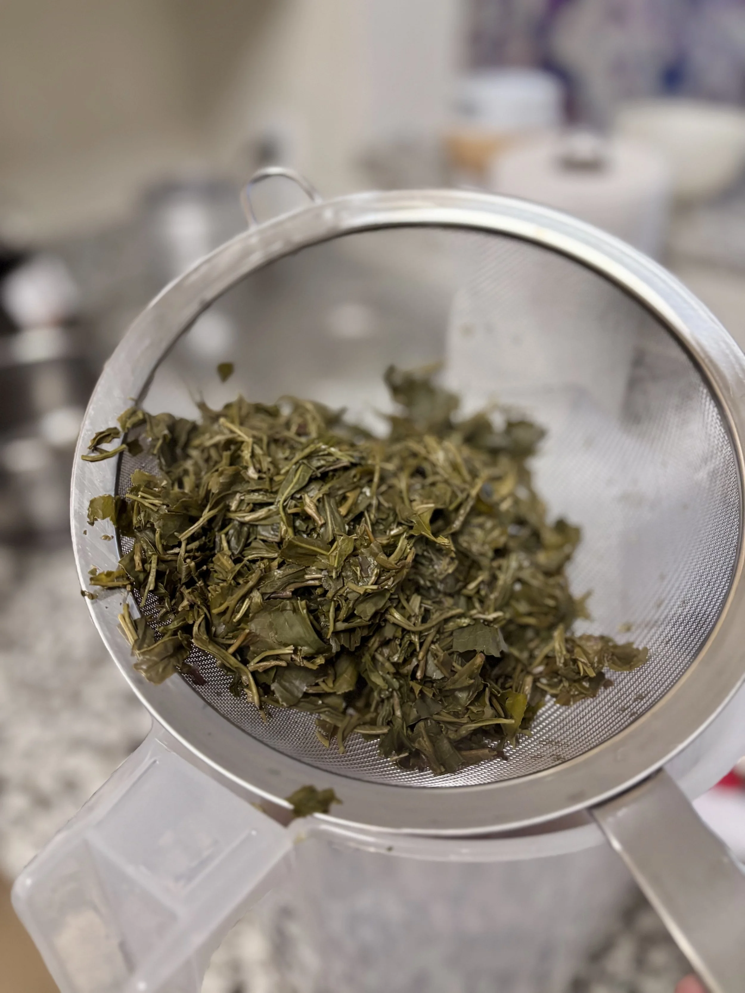 Steeping and straining green tea for a concentrate I used in lattes and more.