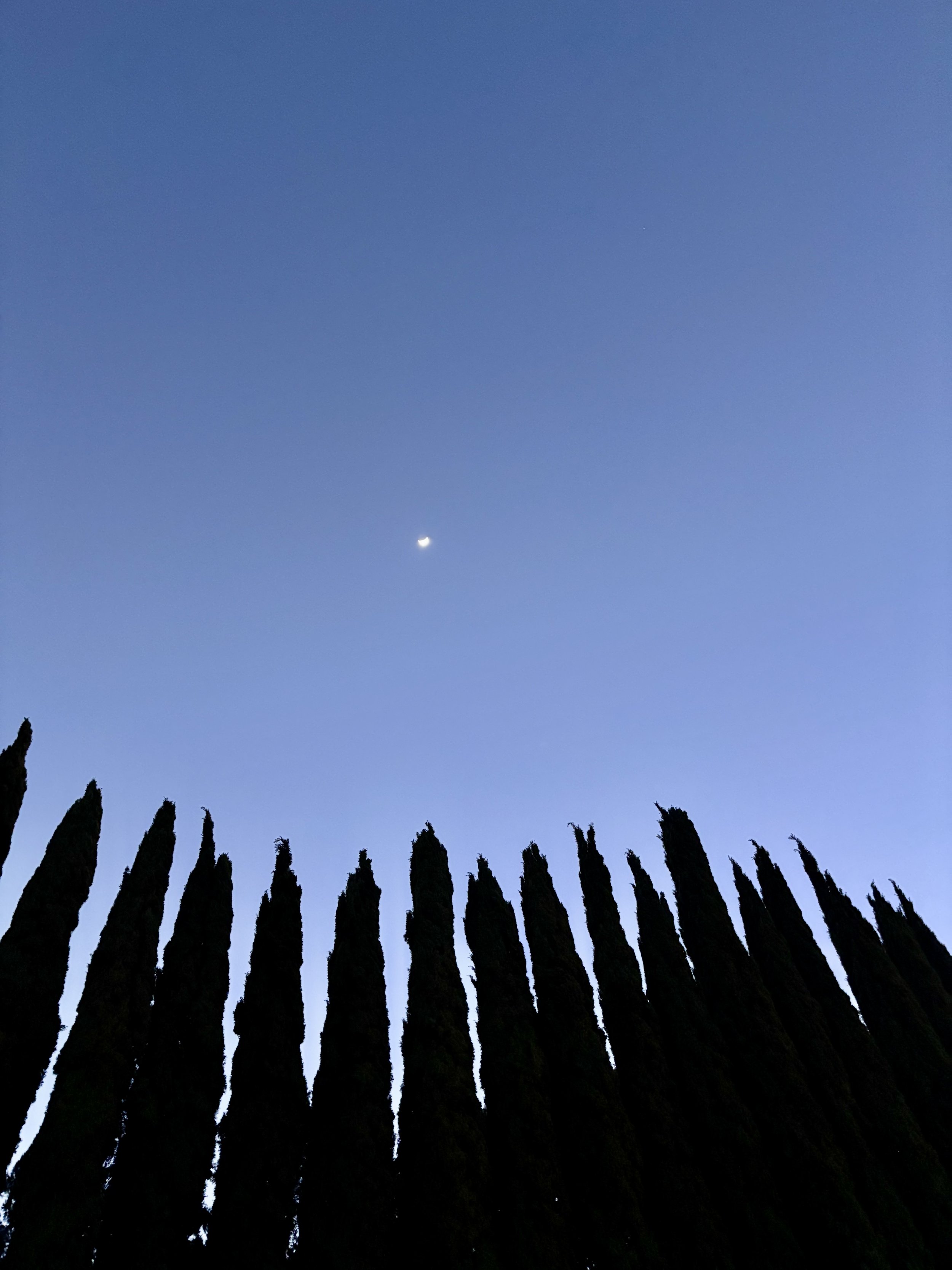 The moon in Taurus high above the trees.